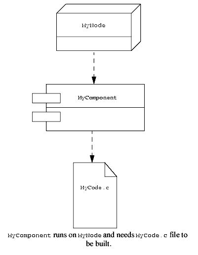 - A dependency from a node to a file means that all the executable components running on the node need the file to be built.