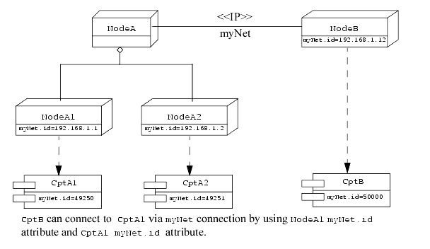 A connection is a physical link between two nodes or two executable components. It is defined by its name and stereotype.
