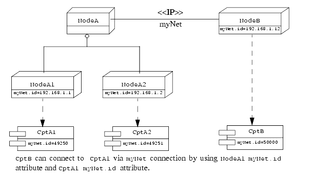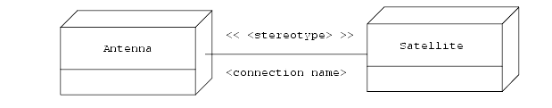 A connection is a physical link between two nodes or two executable components. It is defined by its name and stereotype.