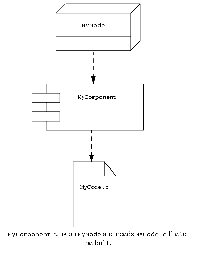 - A dependency from a node to a file means that all the executable components running on the node need the file to be built.
